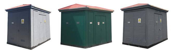 5、变压器室可选择S11以及其他低损耗油浸式变压器和干式变压器;变压器室设有自起动强迫风冷系统及照明系统。采用自然通风和强迫通风两种方式,通风冷却性能良好。变压器室有温控仪,能自动控制变压器温度,保证变压器满负荷运行。